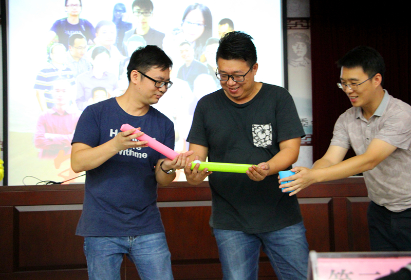 既然是集體過生日,自然少不了有趣歡樂的集體游戲,在大家的歡聲笑語中,“前世隊(duì)”通過隊(duì)員的齊心協(xié)力、相互配合,戰(zhàn)勝了“今生隊(duì)”,贏得切蛋糕的“屠龍刀”。最后,大家圍繞著甜蜜的生日蛋糕,齊唱生日祝福歌,一起吹蠟燭、吃蛋糕,共同度過了一次愉快而又溫馨的集體生日會。