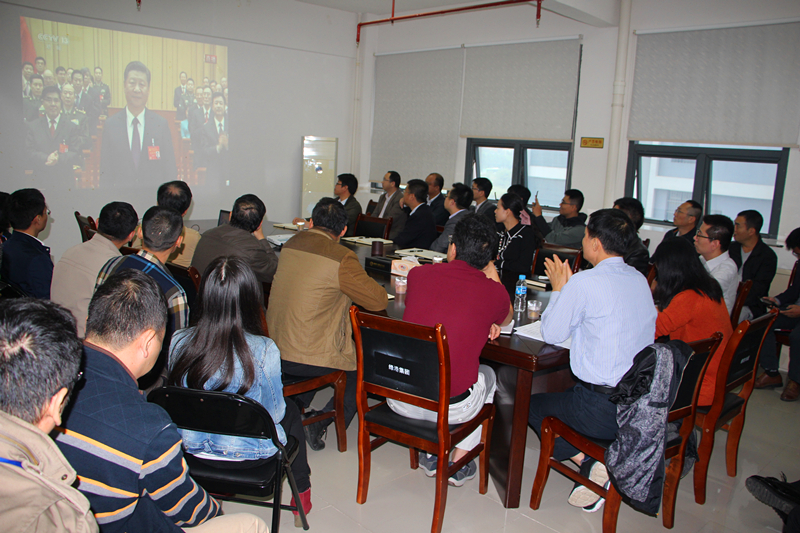 金秋十月,南國(guó)綠城花正艷。10月18日,黨的十九大在北京勝利開(kāi)幕。當(dāng)日上午9時(shí),綠港集團(tuán)黨委組織集團(tuán)公司領(lǐng)導(dǎo)班子全體成員、董事長(zhǎng)助理、總經(jīng)理助理,各部門(mén)、各子公司負(fù)責(zé)人及公司全體黨員,在麗匯大廈415會(huì)議室集中收看中國(guó)共產(chǎn)黨第十九次全國(guó)代表大會(huì)開(kāi)幕會(huì)直播盛況。全體與會(huì)人員懷著無(wú)比激動(dòng)的心情,聚精會(huì)神,靜靜聆聽(tīng),認(rèn)真記錄,不時(shí)爆發(fā)出熱烈的掌聲!在長(zhǎng)達(dá)三個(gè)半小時(shí)的收看過(guò)程中,整個(gè)會(huì)場(chǎng)始終保持莊嚴(yán)、肅穆、緊張、熱烈的良好氛圍。