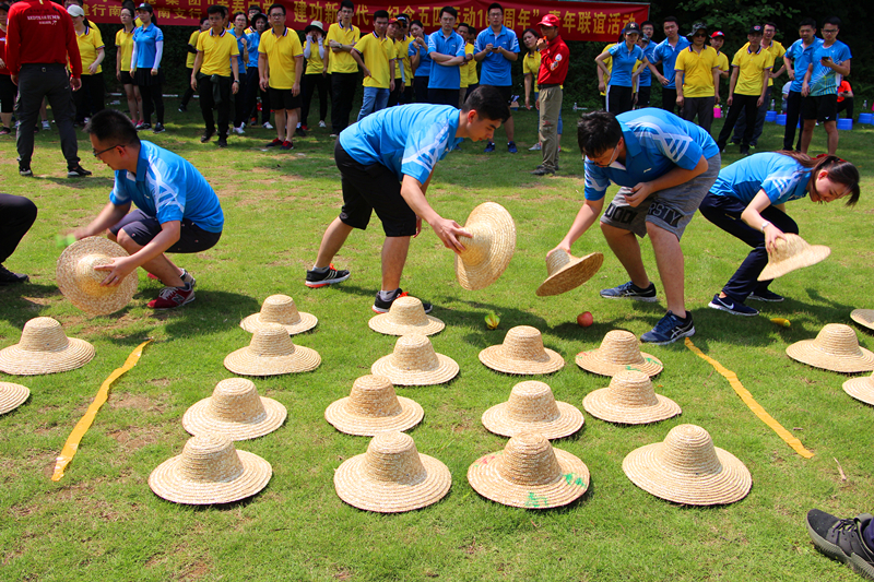 活動當天,隊員們通過熱身游戲、找朋友等趣味游戲拉近彼此的關(guān)系,提振精氣神,開啟了拓展訓(xùn)練。隨后,全體人員被分成6個小分隊,經(jīng)過一番頭腦風(fēng)暴,“戰(zhàn)狼隊”“水魚隊”“老鐵隊”“烈火隊”等各種有趣的團隊名稱隨之而出,各支隊伍斗志昂揚、蓄勢待發(fā)。訓(xùn)練正式開始,在教官的指導(dǎo)下,各隊員們充分發(fā)揮團隊協(xié)作精神,積極參與、不怕吃苦、不畏艱難,在烈日炎炎下,在汗水與歡樂中,成功完成了“水果忍者”、“龜兔賽跑”、“魔力闖關(guān)”、“枕頭大戰(zhàn)”等一個又一個訓(xùn)練項目與挑戰(zhàn)。
