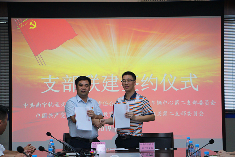 最后,南寧軌道交通集團(tuán)有限公司運營分公司車輛中心第二黨支部與綠港集團(tuán)機(jī)關(guān)二支部進(jìn)行黨建聯(lián)盟簽約儀式,并授予了“南寧地鐵黨建聯(lián)盟”牌匾。通過黨組織的結(jié)對共建,結(jié)對雙方將努力實現(xiàn)“資源共享、優(yōu)勢互補、互利共贏”的目標(biāo),充分發(fā)揮同盟的綜合效應(yīng),豐富基層黨建內(nèi)涵,促進(jìn)支部黨建工作水平再上新臺階。
