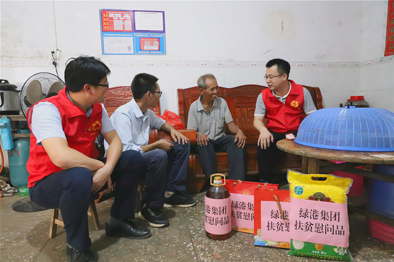 綠港集團(tuán)黨委書記、董事長龔國強(qiáng),黨委副書記、總經(jīng)理鄧?yán)^慧在貧困戶梁承營家開展慰問(王振霖 圖)
